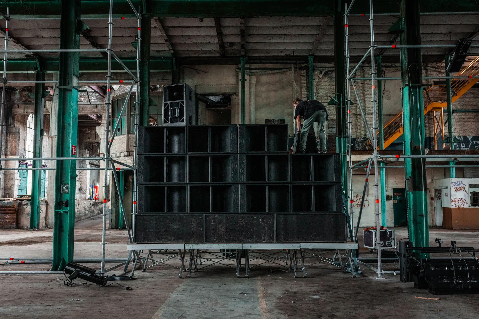 Nous avons été contactés par l’équipe décoration du film L’Amour Ouf, réalisé par Gilles Lellouche, afin d’imaginer une scénographie de rave des années 90 pour l’une des scènes du long métrage. Pour recréer cette ambiance authentique, nous avons ressorti nos classiques scanners, Svoboda, … ainsi qu’un impressionnant mur de son de 6 mètres de haut.